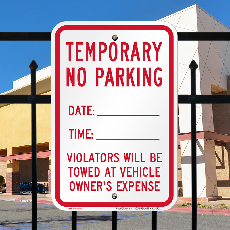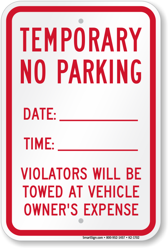 Temporary No Parking Sign: Date ____ Time______ Violators Will Be Towed At Vehicle Owner's Expense K2-1702