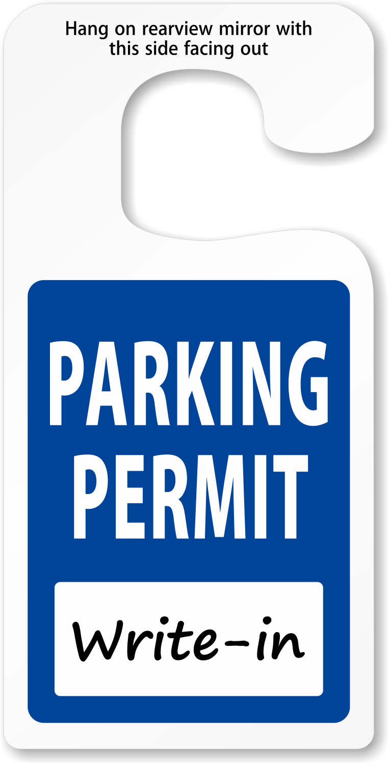 - Blue permit hangs from your rear-view mirror and can be moved from car-to-car.