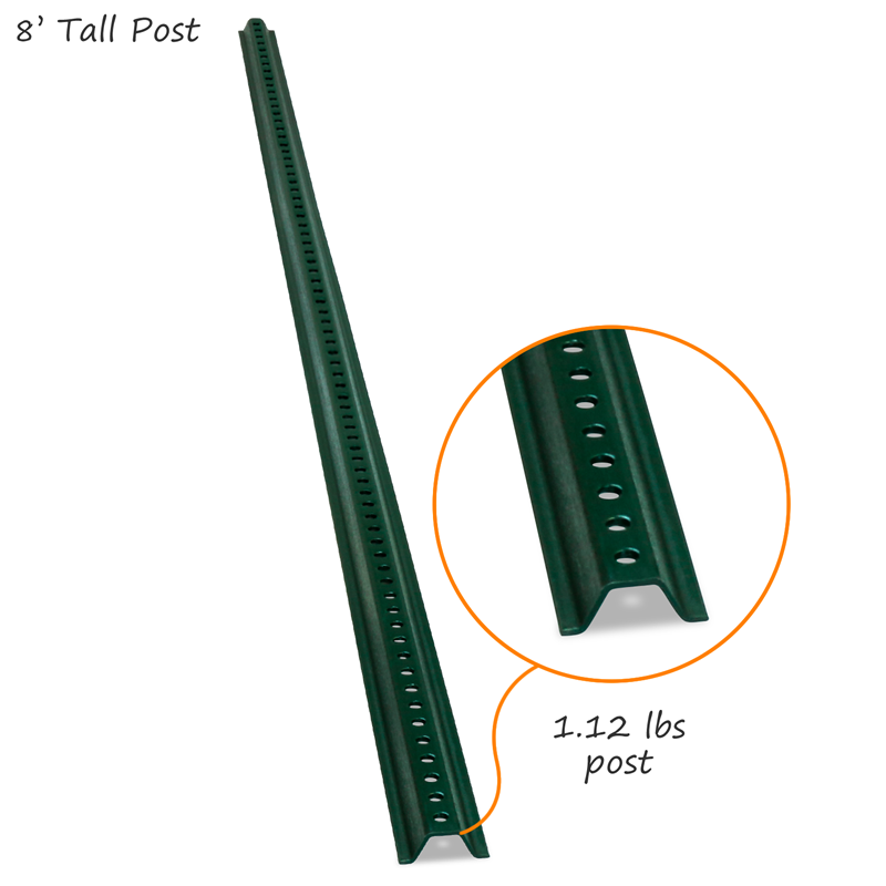 - Posts are made from steel with a baked-on green enamel finish that stops rust.