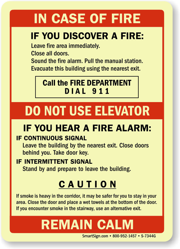 Display this photoluminescent upon discovery of fire, call the fire department & remain calm sign to ensure that everyone knows what to do in case of a fire emergency. This sign will help bring everyone on your property to safety.