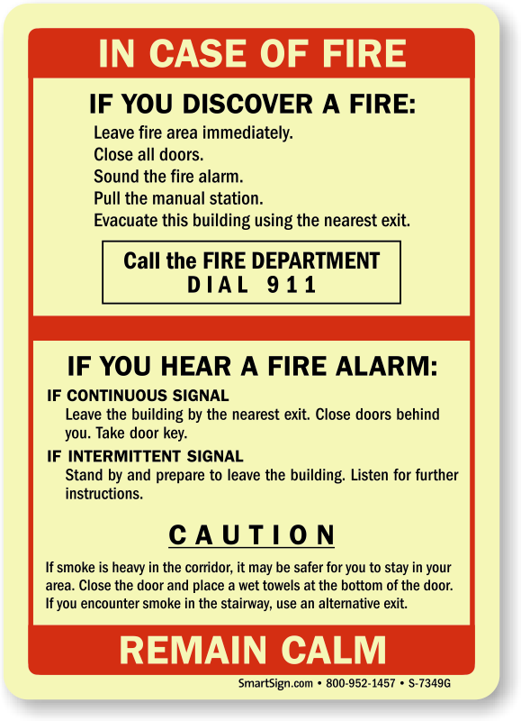 In any emergency some natural instincts are just to freeze up and go into shock, make sure everyone knows exactly what to do in a fire emergency. Display this photoluminescent sign to ensure that 911 is called and everyone is brought to safety.