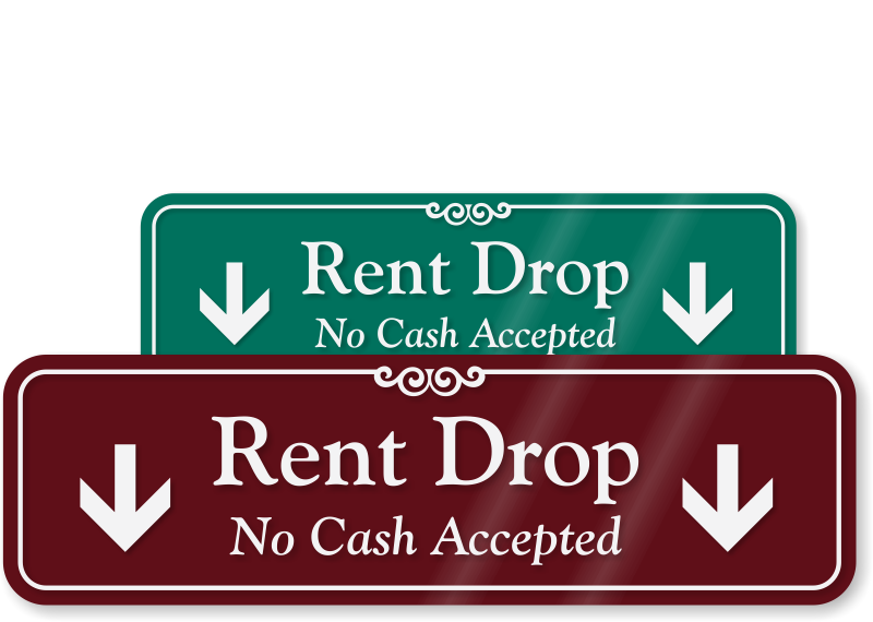 ShowCaseâ„¢ Wall Sign: Rent Drop No Cash Accepted SE-1663 Learn More...
