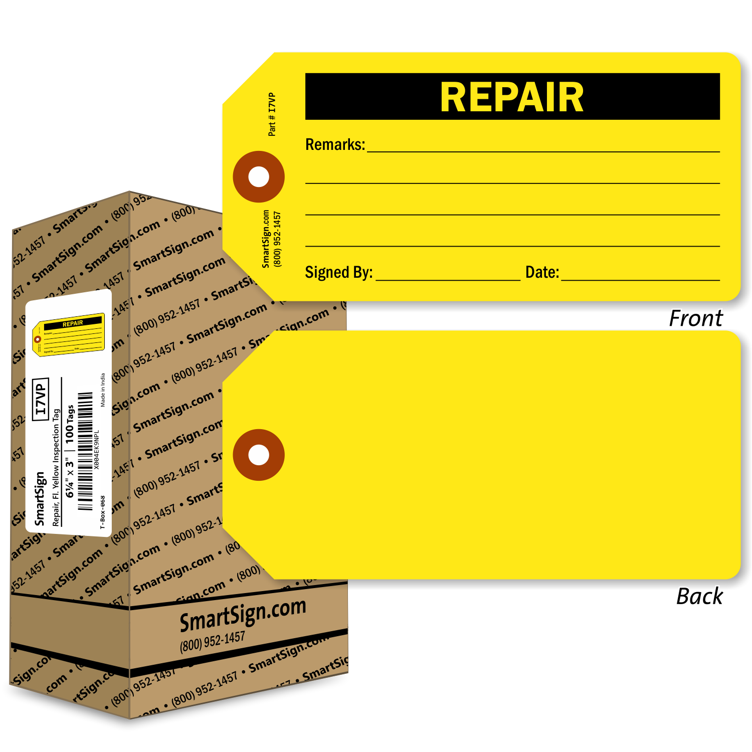 - Write a description of the repairs on the tag, if needed. The rear of the tag is blank.