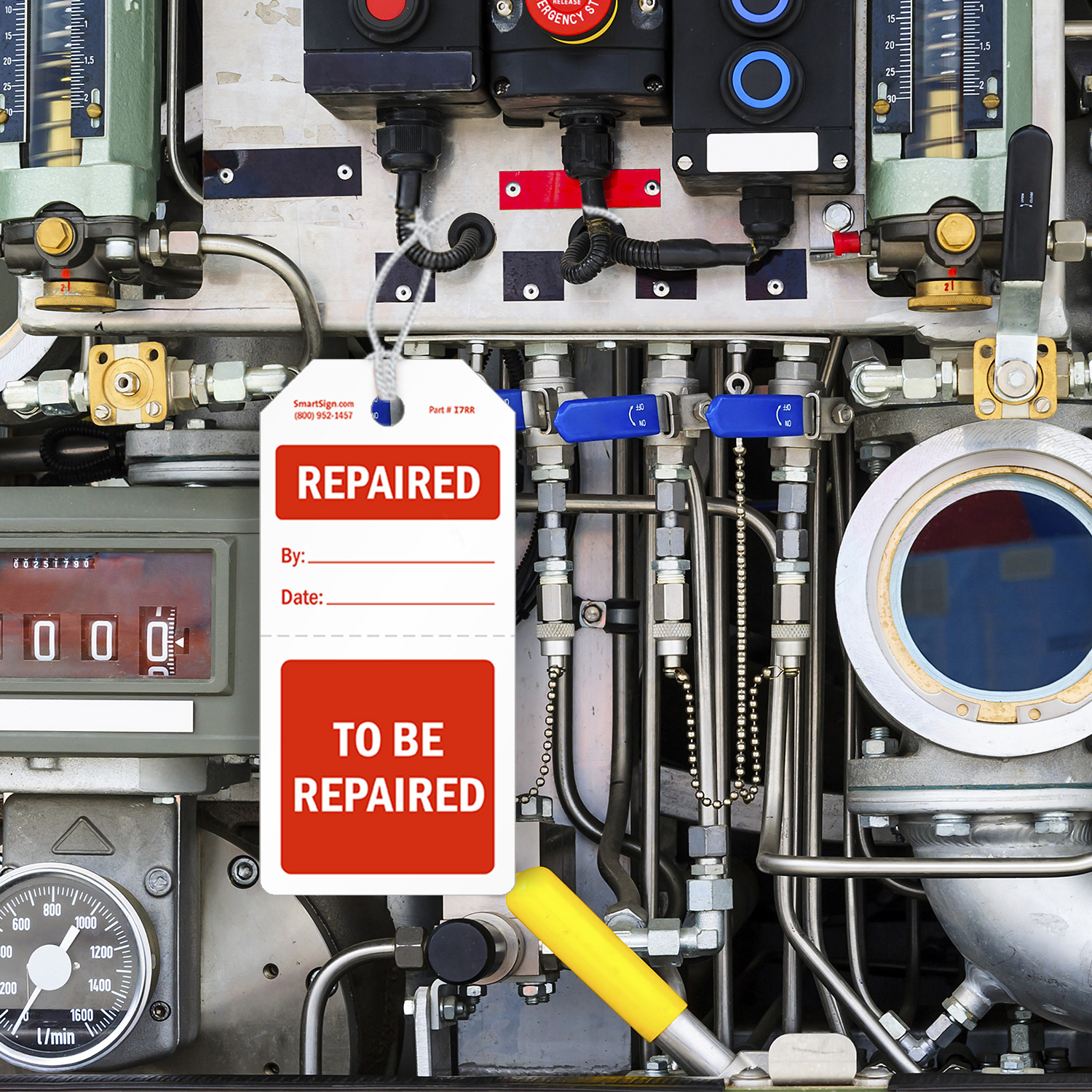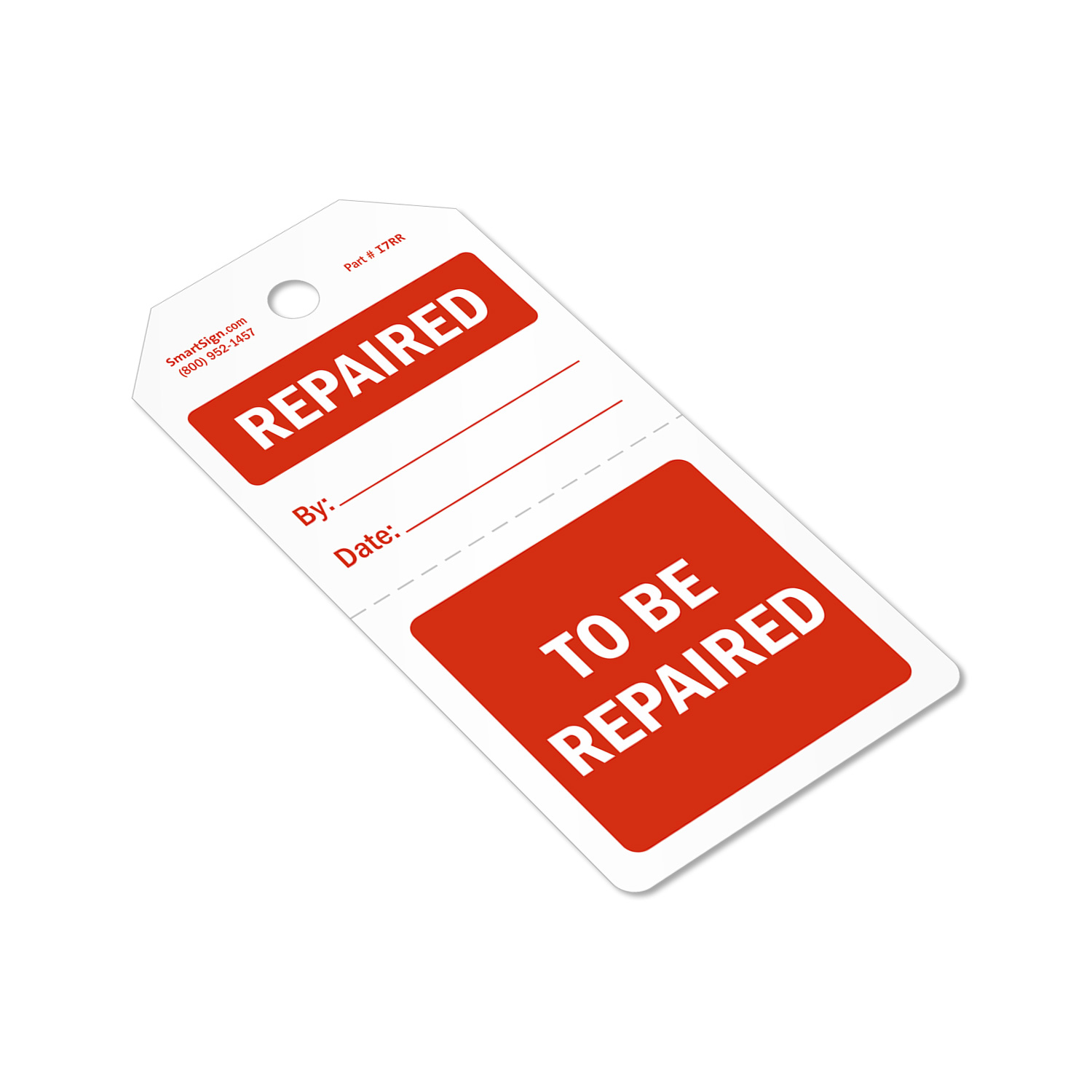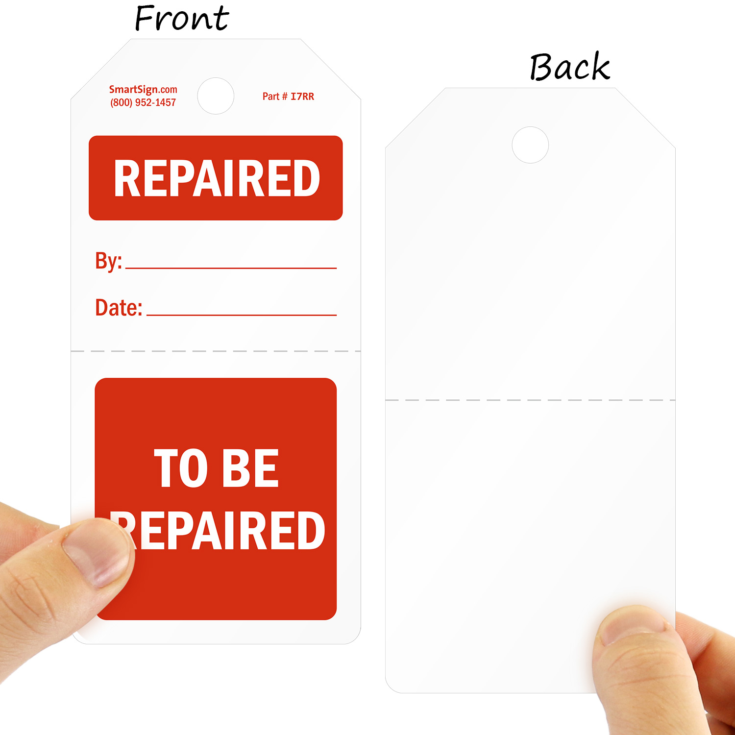 - First, use the tag to mark that the equipment needs repair. Then, after the repair is completed, tear off the lower portion and you have a record that says that the repair is finished.
