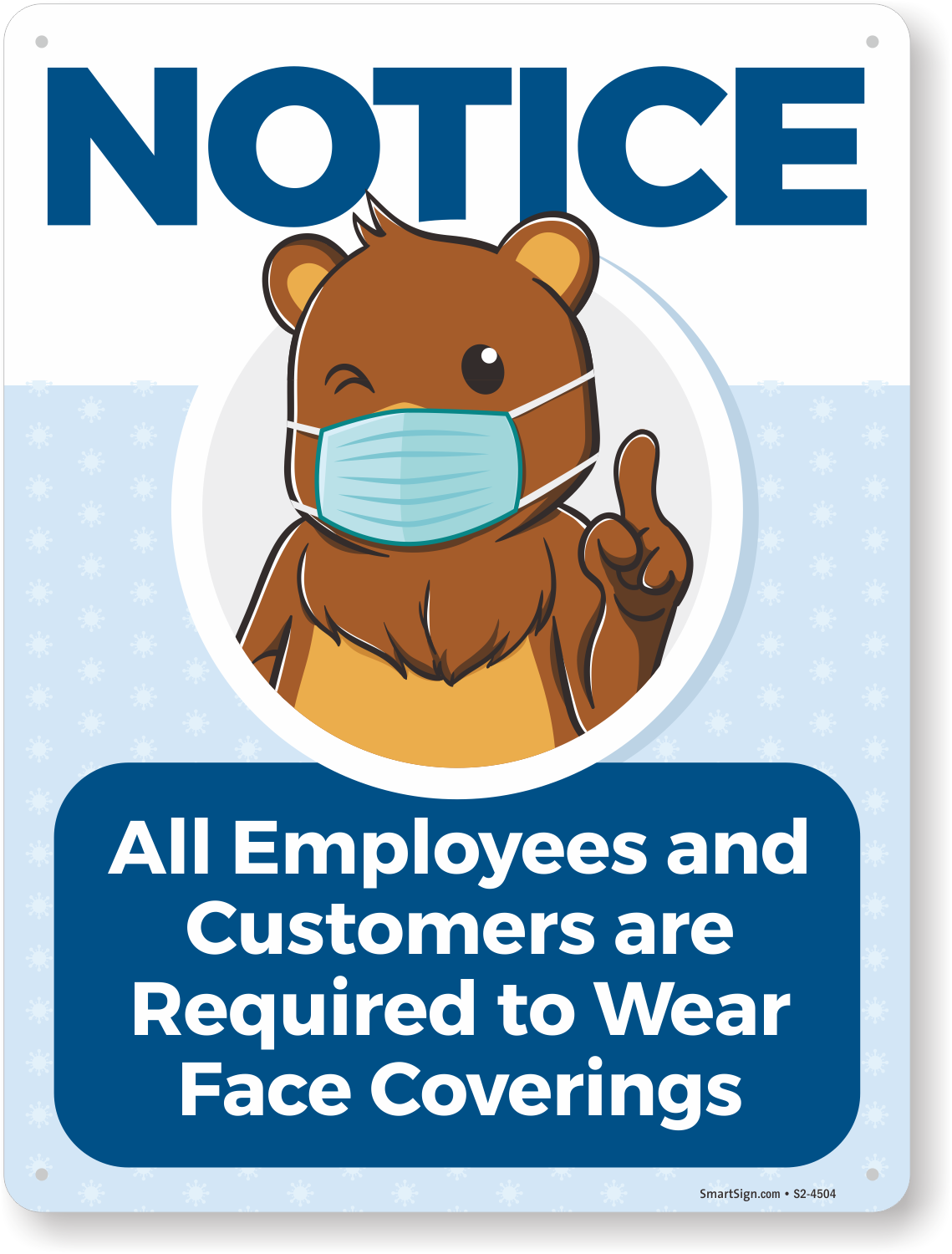 Notice Face Covering Sign: All Employees and Customers Required to Wear Face Coverings S2-4505