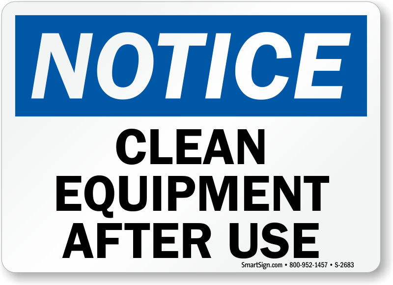 A notice reminds everyone about your policy. Use a "clean equipment after use" sign. Designed to work.