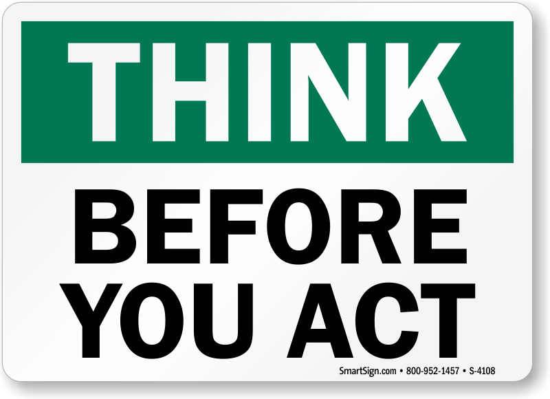 Show you care. Use a "before you act" sign. Signs work!