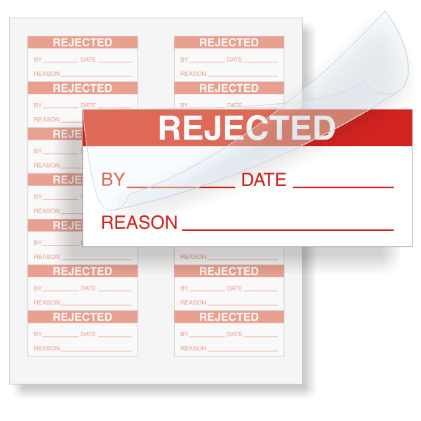 Effectively mark rejected items with a label that seals in your written message. Write on this REJECTED label and fold over a self-laminating seal for protection.