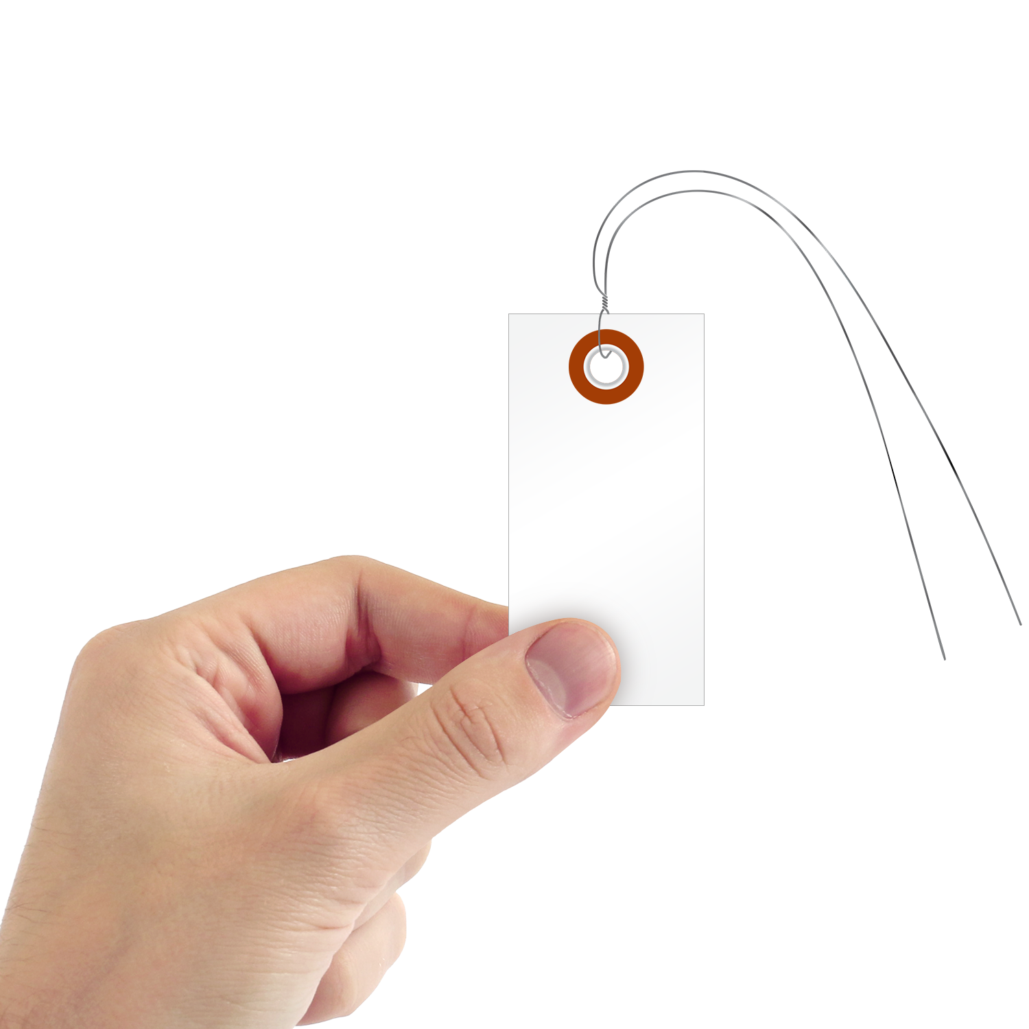 Durable Tyvek tags are offered with pre-attached wire to easily secure tags to any object. Use pen or marker on smudge proof surface to input information.