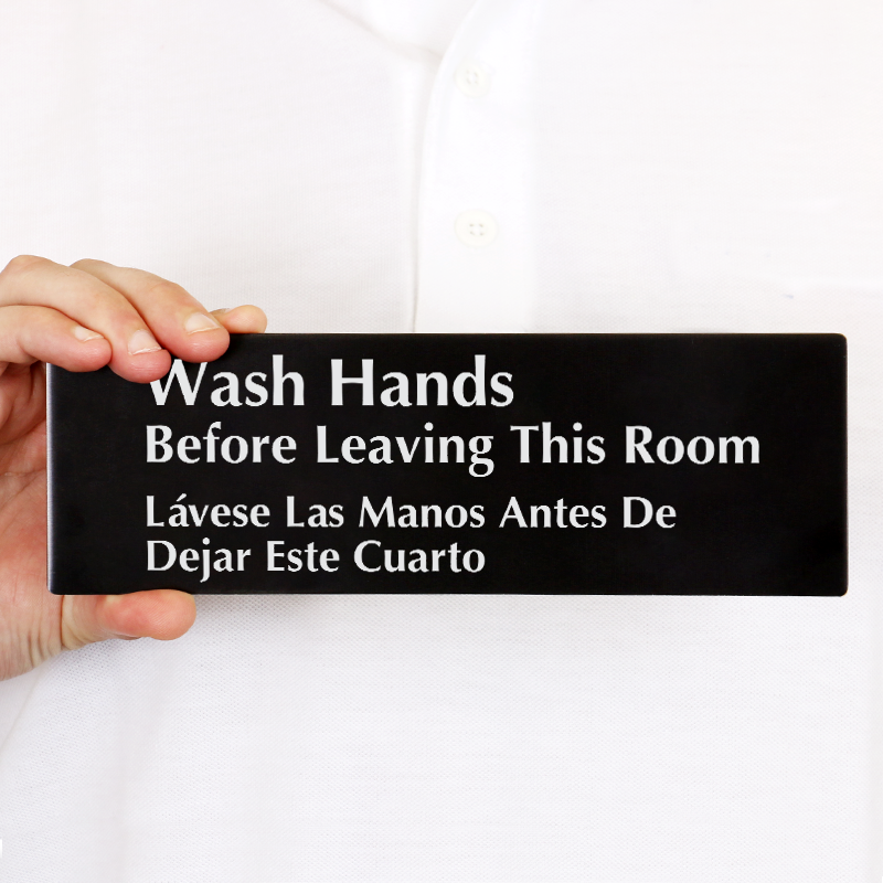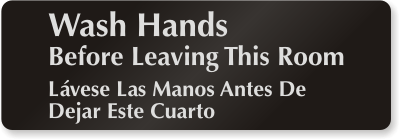 3in. x 9in. Bilingual DiamondPlateâ„¢ Sign: Wash Hands Before Leaving This Room DP-0096 Learn More...