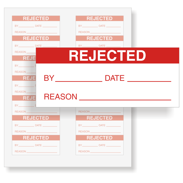 You can protect your equipment and your staff. Place a versatile, durable, high-bonding REJECTED label on defective equipment to save lives.