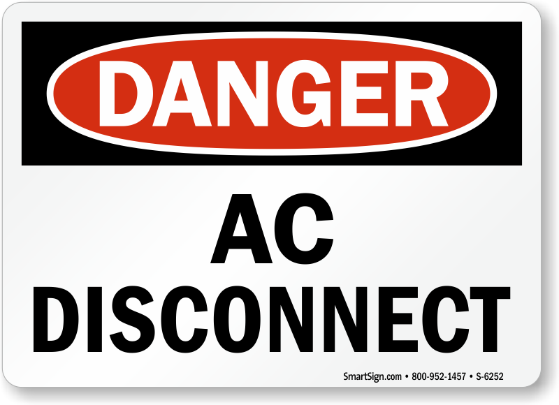 Electrical hazards can be lethal. Mark AC disconnect with this OSHA Danger Sign to make sure that everyone is well informed and takes necessary caution.
