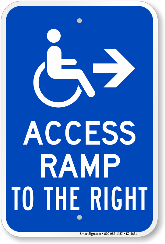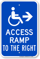 Handicap Sign: Access Ramp To The Right (with Right Arrow) Learn More...