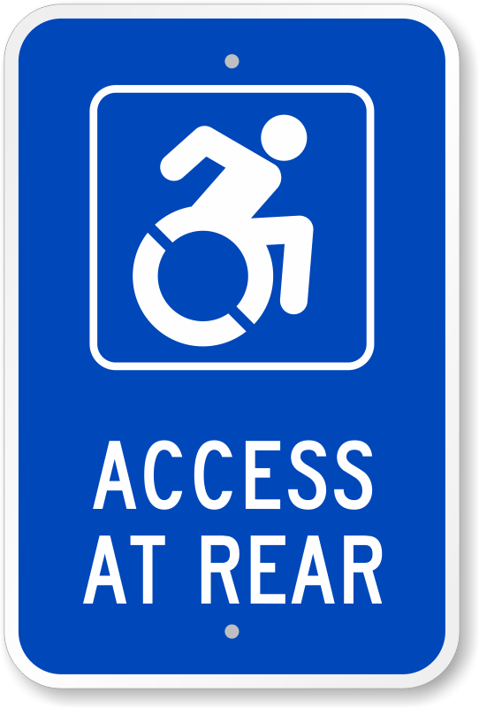Accessible Sign: Access At Rear (with Graphic) Learn More...