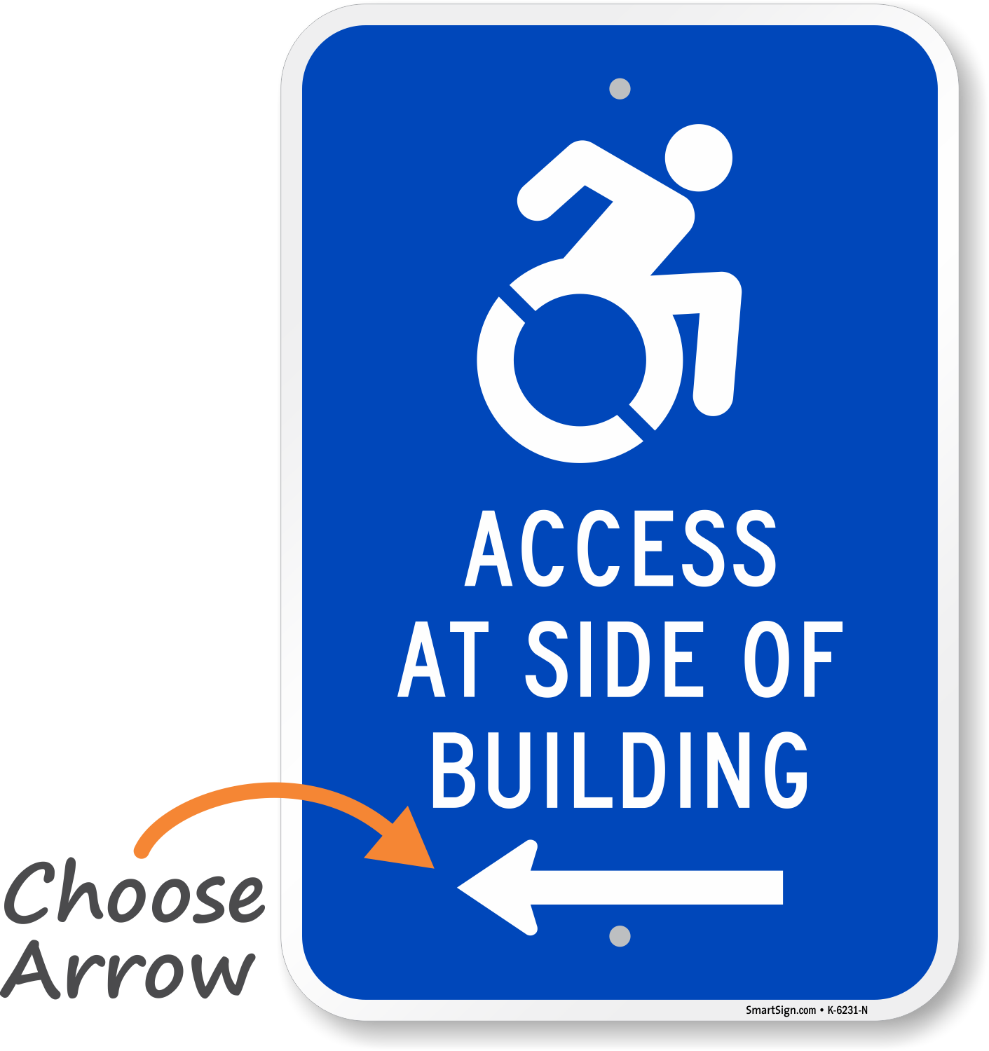 Accessible Entrance Sign: Access At Side Of Building (Choose Arrow) (with Graphic) K-6231-N Learn More...