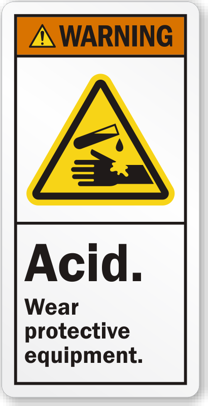 As a preventive measure to avoid any accident, apply this label and warn employees to wear protective equipment while handling acid in the lab.