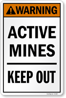 ANSI Warning Sign: Active Mines, Keep Out S2-5057