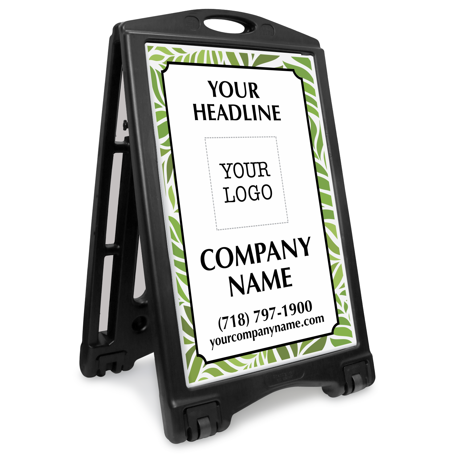 Portable two-sided sign gives you the ultimate flexibility to place, replace, and remove the sign as needed. Kit includes two sign panels and a frame with built-in wheels.