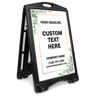 - Leave a good impression by adding your company's name, contact number, and website's name. Your guests will really appreciate this large sidewalk sign with all the details they're looking for.