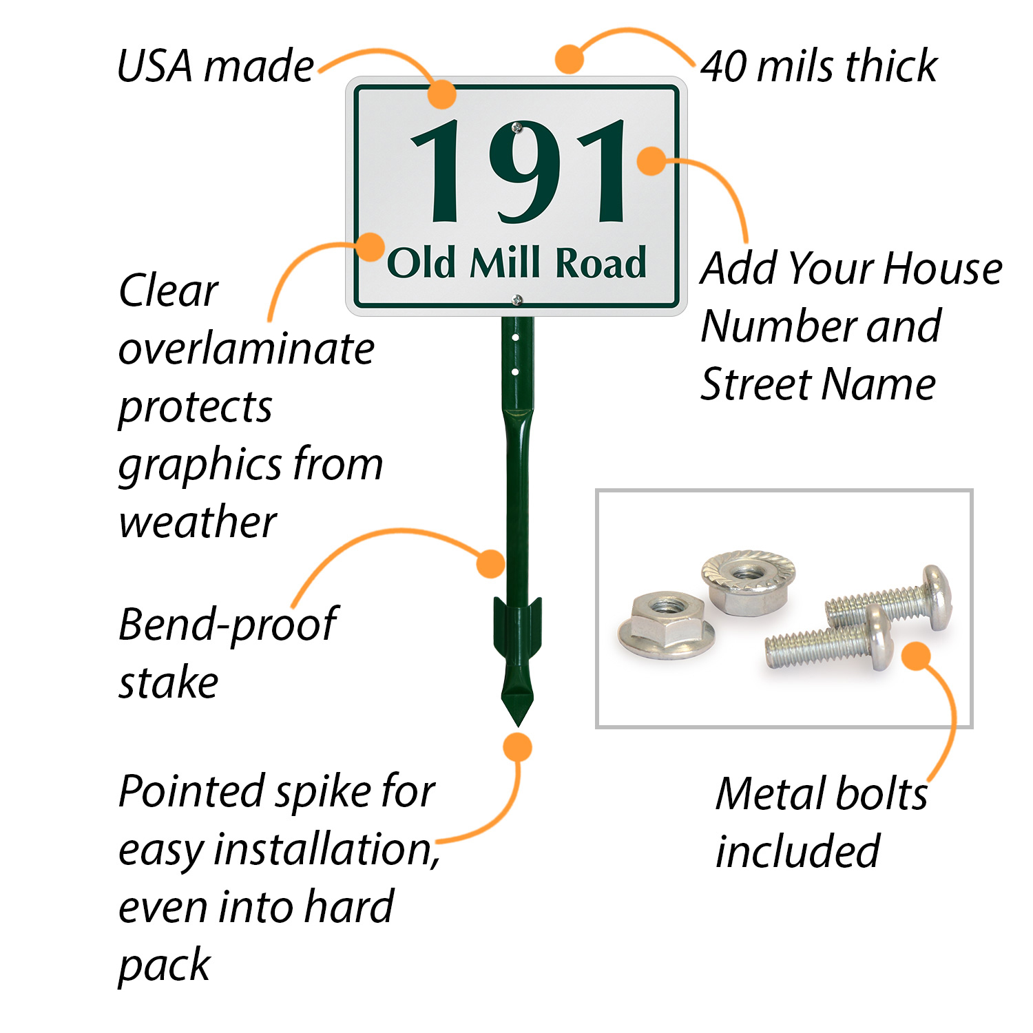 - Sign comes preassembled with a 1.5' tall stake which is hard to bend, unlike other cheap plastic stakes that can be tampered with easily.