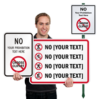 Custom Prohibition LawnBoss® Sign & Stake Kit: 12" x 10" Custom Prohibition LawnBoss® Sign & Stake Kit - No - Choose Your Clipart And Add Text K-3084