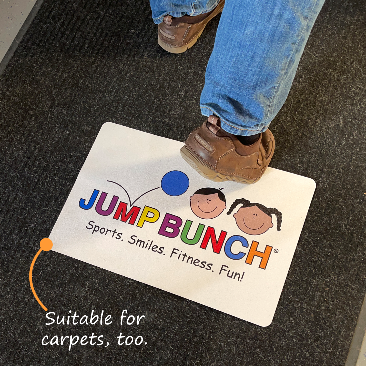Custom floor signs come with strong adhesive backing and are extremely easy to install. These are most suited for smooth floors and can be applied to low-ply commercial carpets as well. All that you have to do is clean the surface and apply your decal. Floor decal materials are best suited for smooth surfaces, although SlipSafe heavy-duty and AlumiGrip can be used on textured, hard surfaces as well.