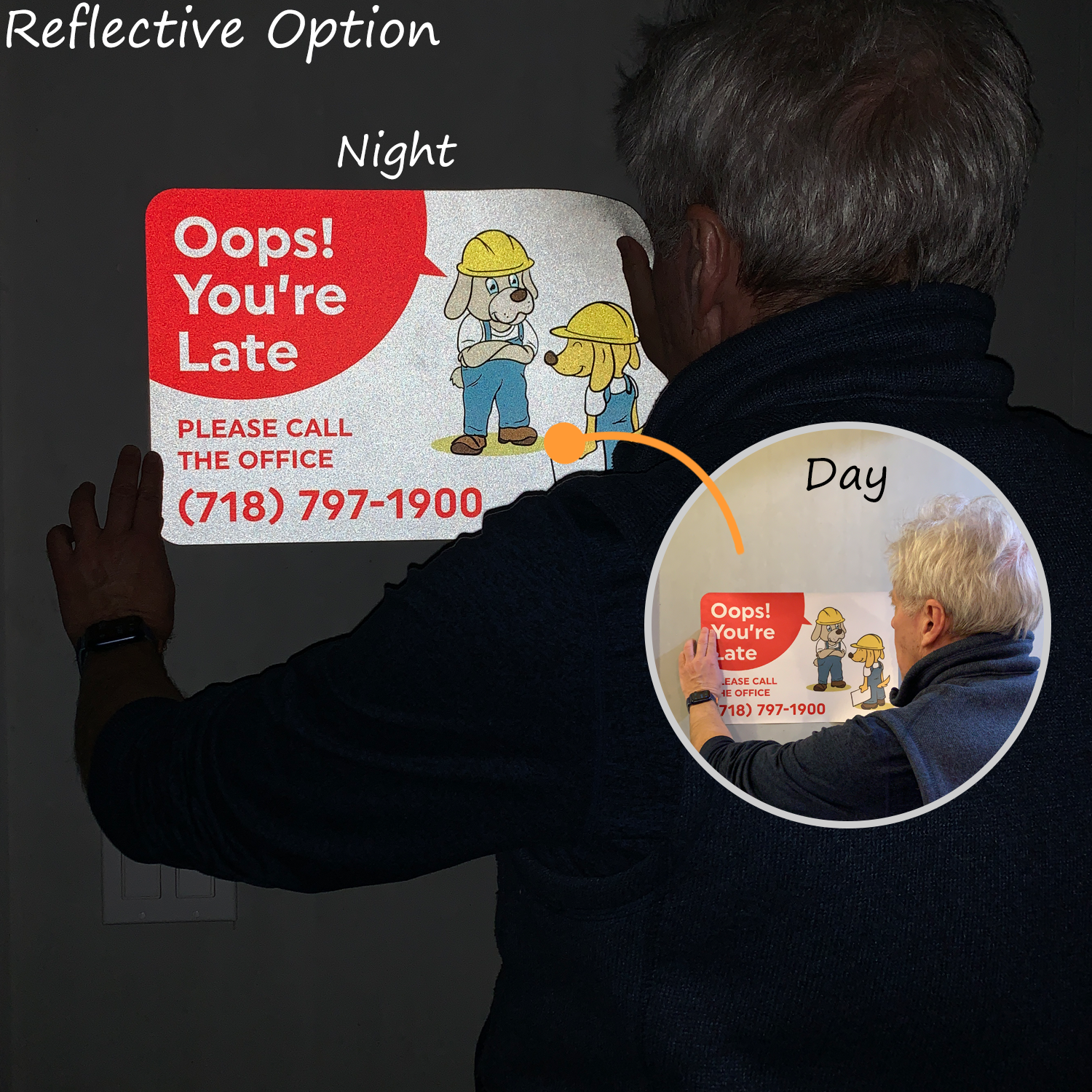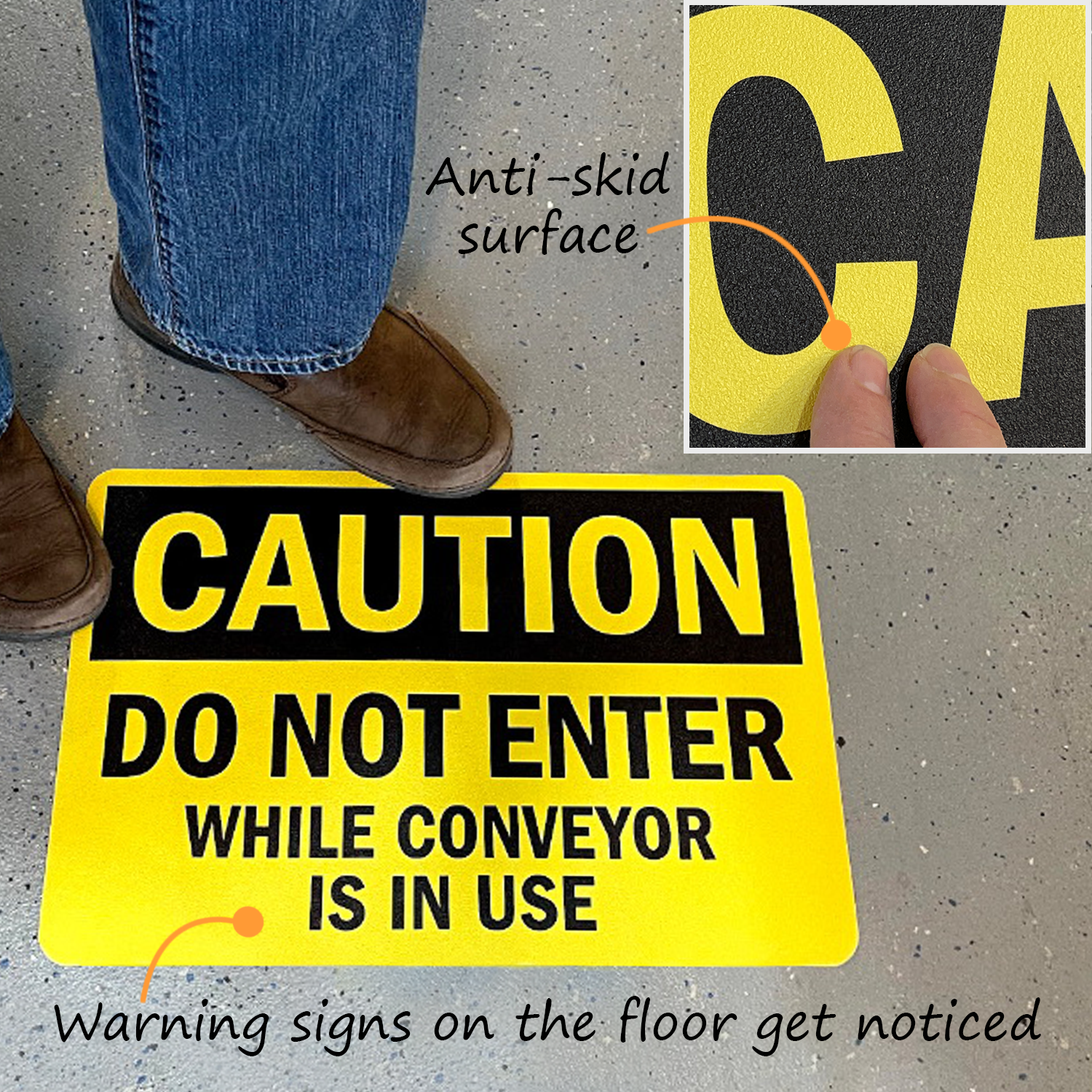 Absolutely! Our custom floor decals feature a textured, enclosed grit-top surface that makes slipping on these signs highly unlikely. The aggressive adhesive backing ensures the decals stay in place.