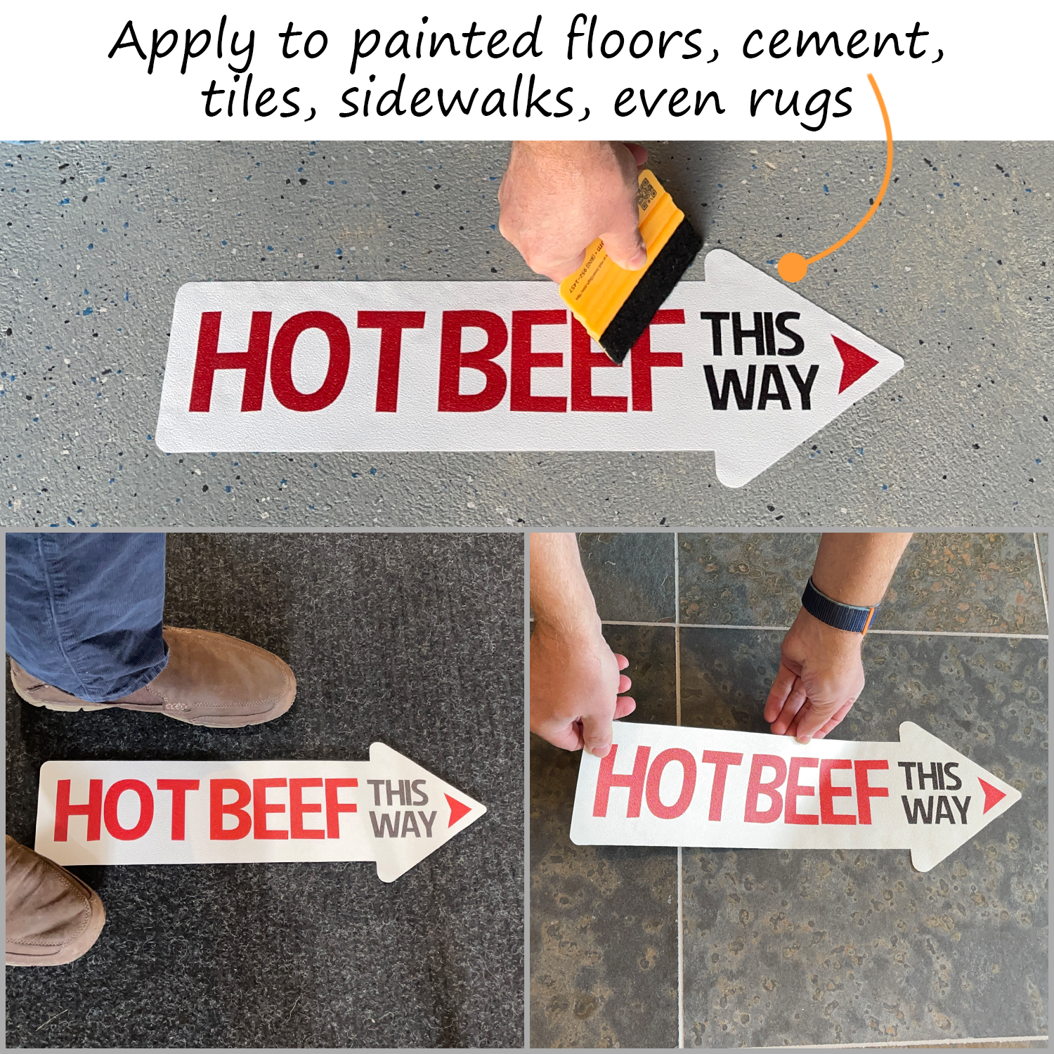 • Our most durable and visible floor sign material. Graphics are protected with a clear, anti-skid laminate.