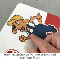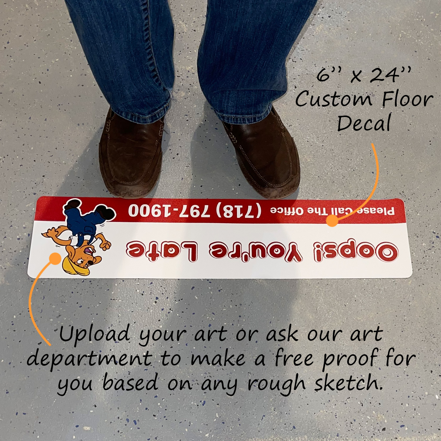 Absolutely! Our custom floor decals feature a textured, enclosed grit-top surface that makes slipping on these signs highly unlikely. The aggressive adhesive backing ensures the decals stay in place.