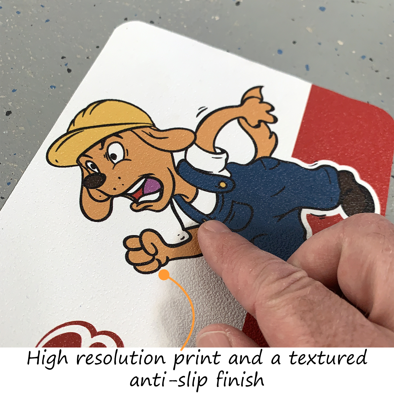 • Our most durable and visible floor sign material. Graphics are protected with a clear, anti-skid laminate.
