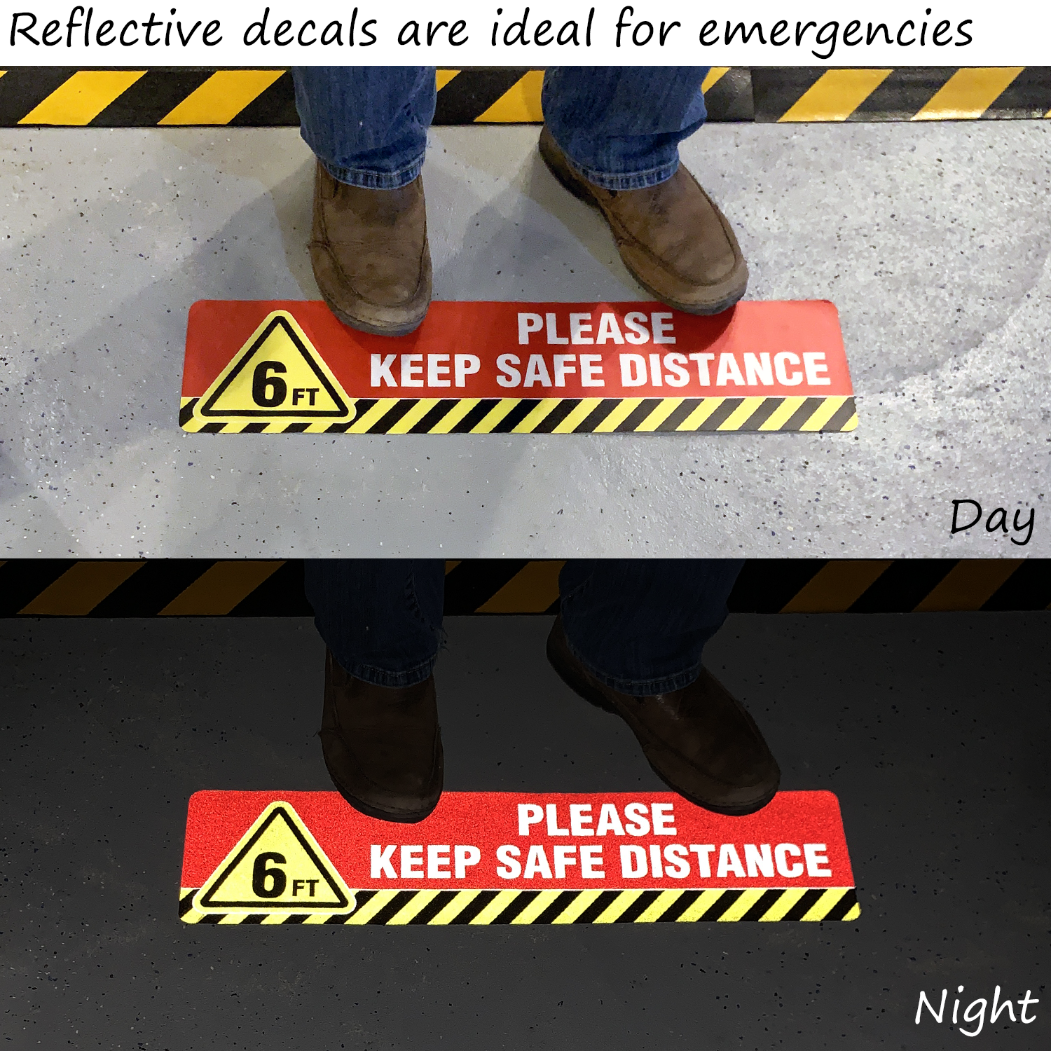 You may go for our SlipSafe™ Glow floor signs that combine photoluminescence with an anti-skid, “pebbly” surface. These signs absorb both natural and artificial light and use it to glow during a blackout or other low-light conditions. This makes these decals perfect for emergencies, evacuations, and fires.