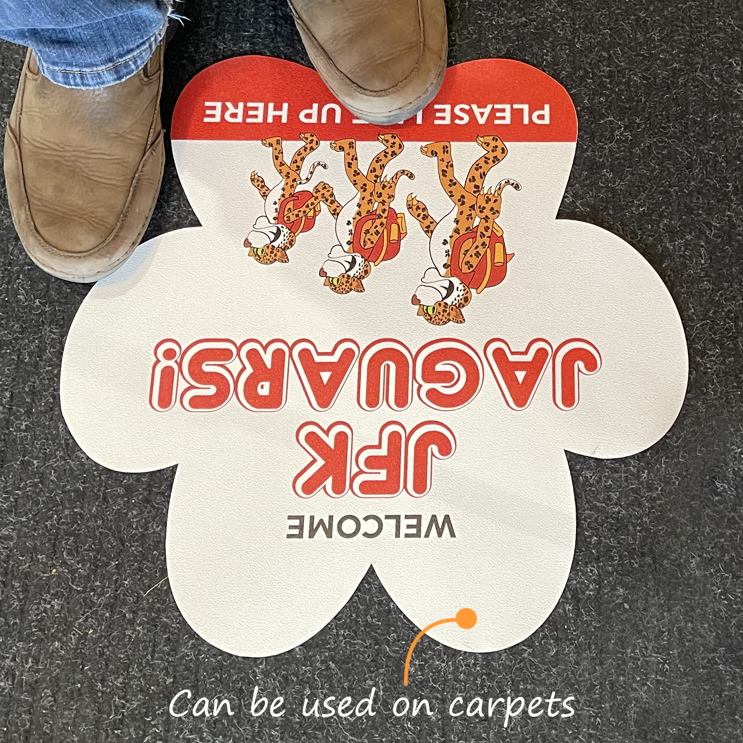 Upload your own artwork and will cut to shape your very own floor sign design!
