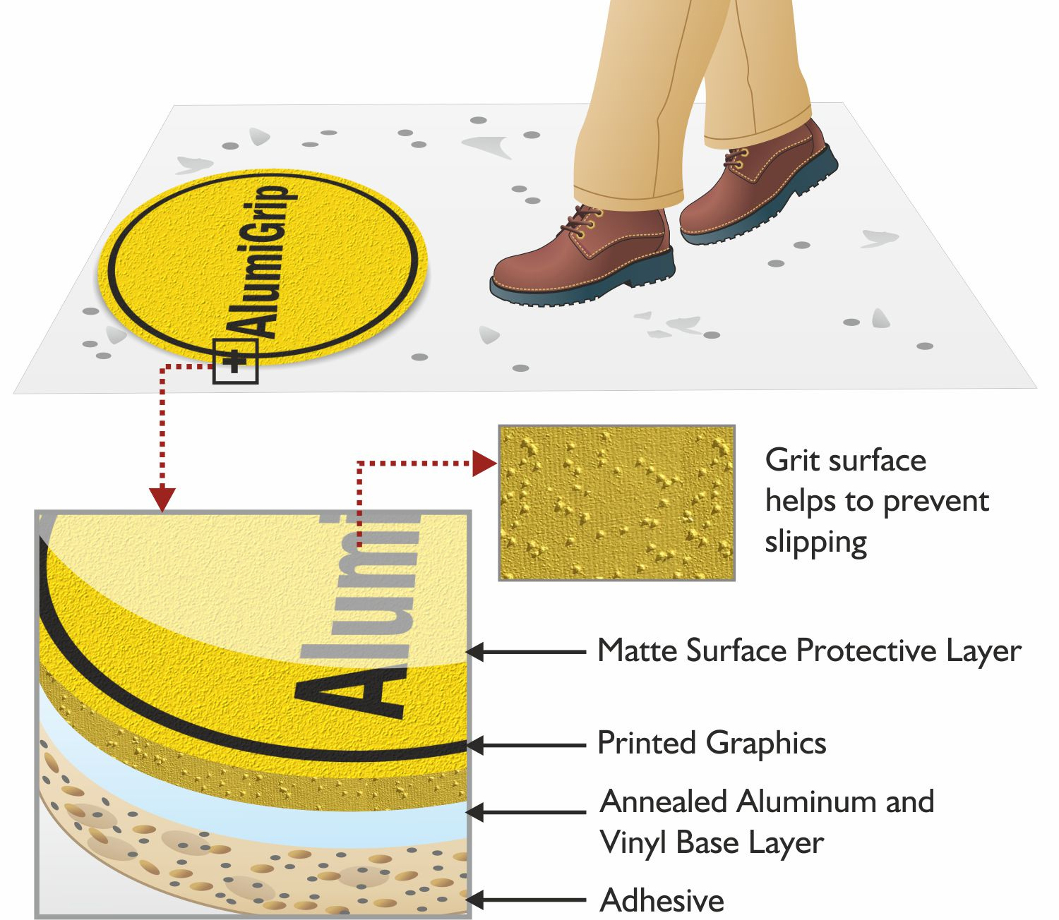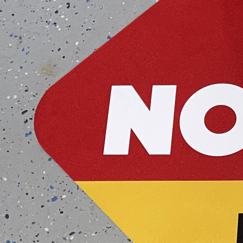 • Our most durable and visible floor sign material. Graphics are protected with a clear, anti-skid laminate.