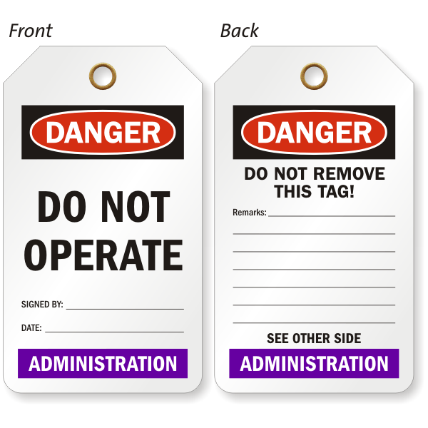 2-Sided OSHA Danger Safety Tag: Do Not Operate Tag - Administration TG-0487 Learn More...