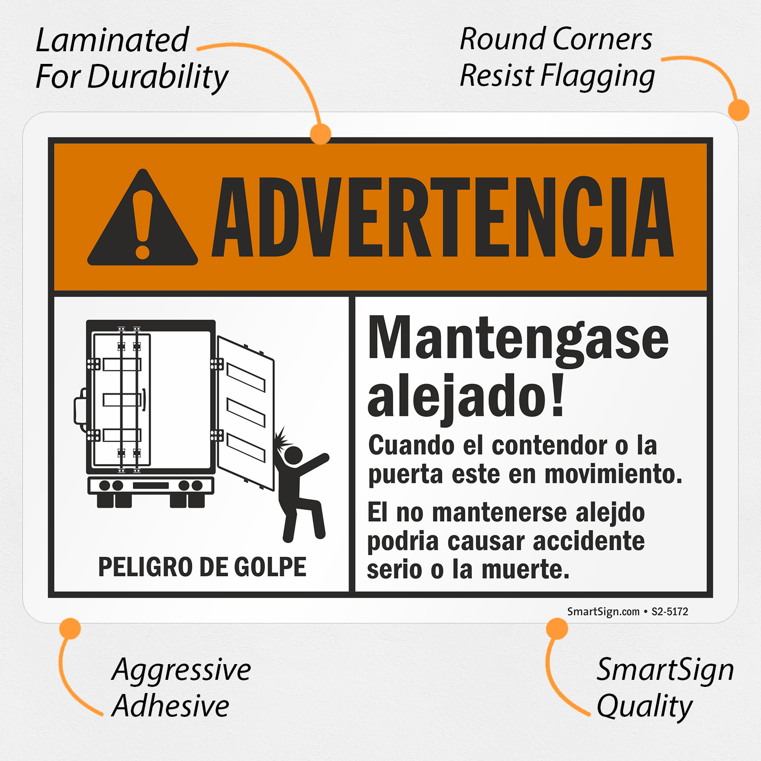 Spanish ANSI Warning Sign: Advertencia - Mantenagase Alejado S2-5172