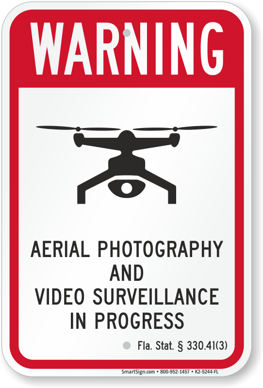 Florida Drone Liability Warning Sign: Aerial Photography And Video Surveillance In Progress - Fls. Stat. § 330.41(3) K2-5244-FL