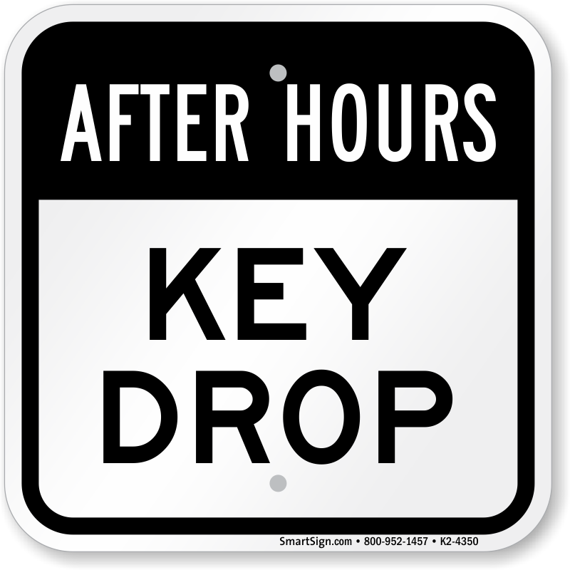 Size: 12" x 12" Material Type: Heavy-Duty Aluminum Sign, 63 mil Verified PurchaseAfter hours key drop