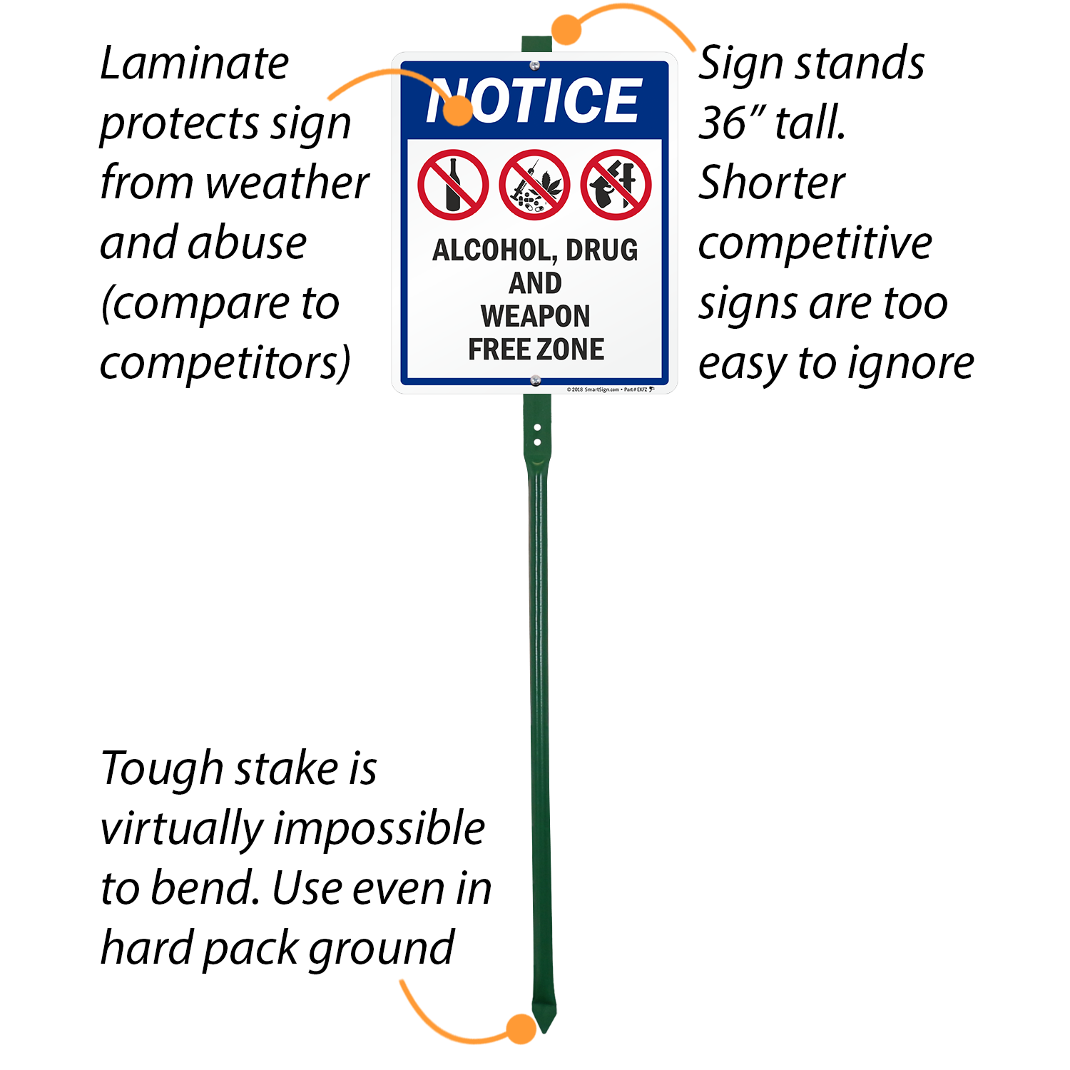 LawnBoss® Sign & Stake Kit: Notice - Alcohol, Drug And Weapon Free Zone K2-5528