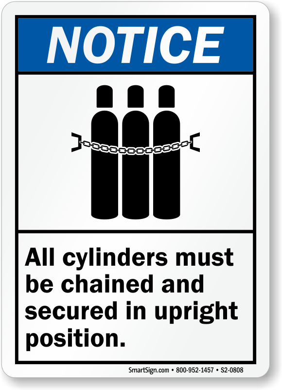 ANSI Notice Sign: All Cylinders Must Be Chained And Secured In Upright Position