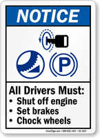 Inform all drivers to check their vehicles, as per instructions, before they leave with this ANSI Notice Sign.