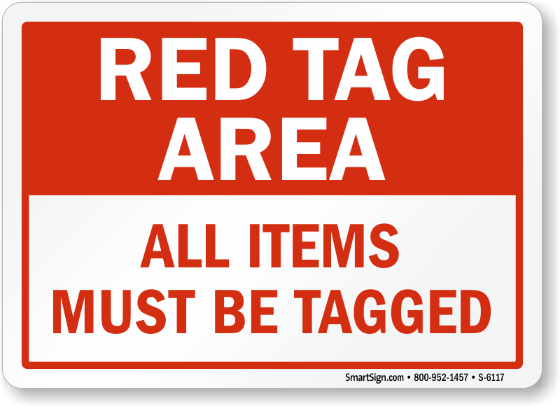 This sign helps ensure workers tag every item in the red tag area.