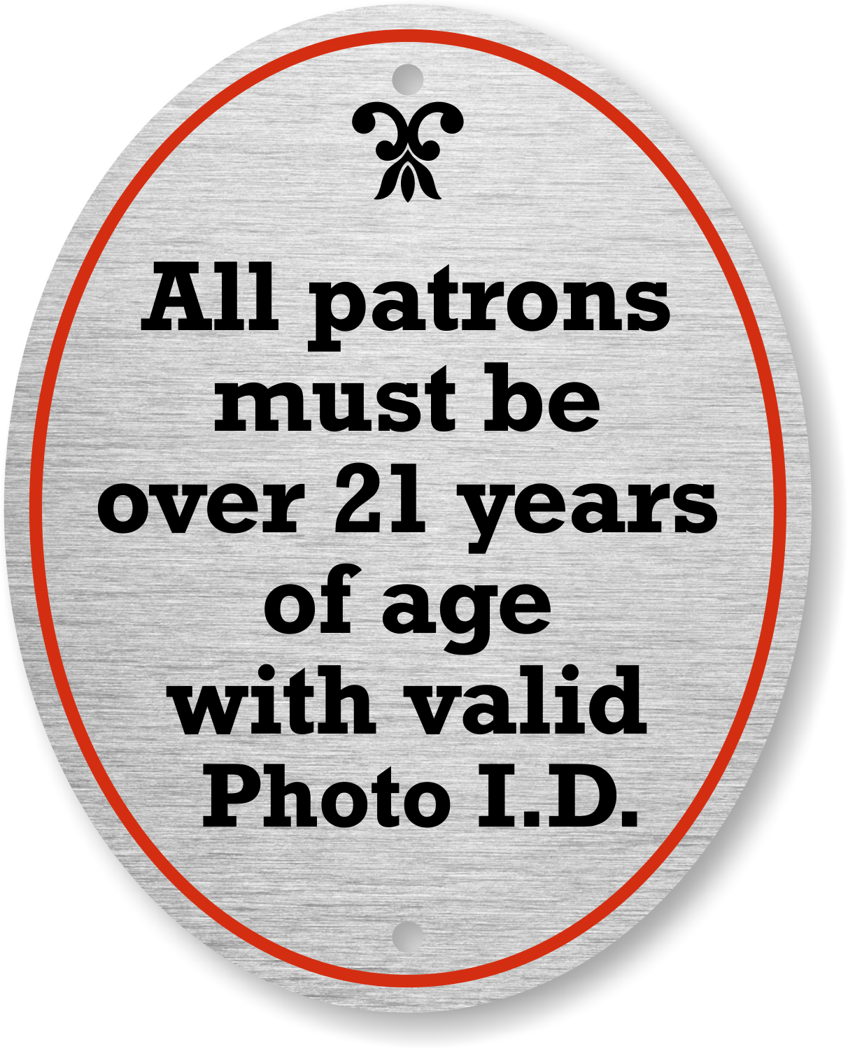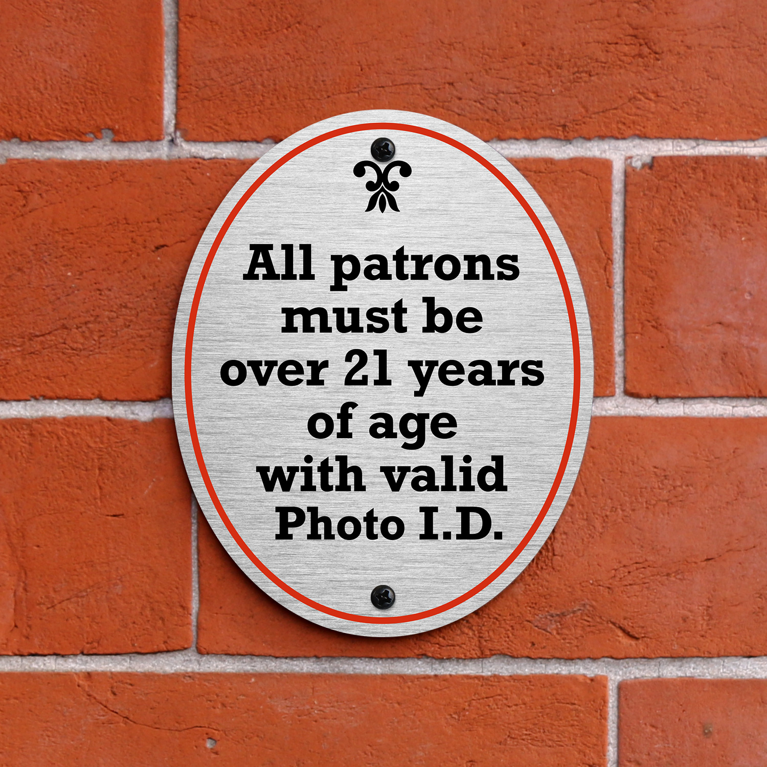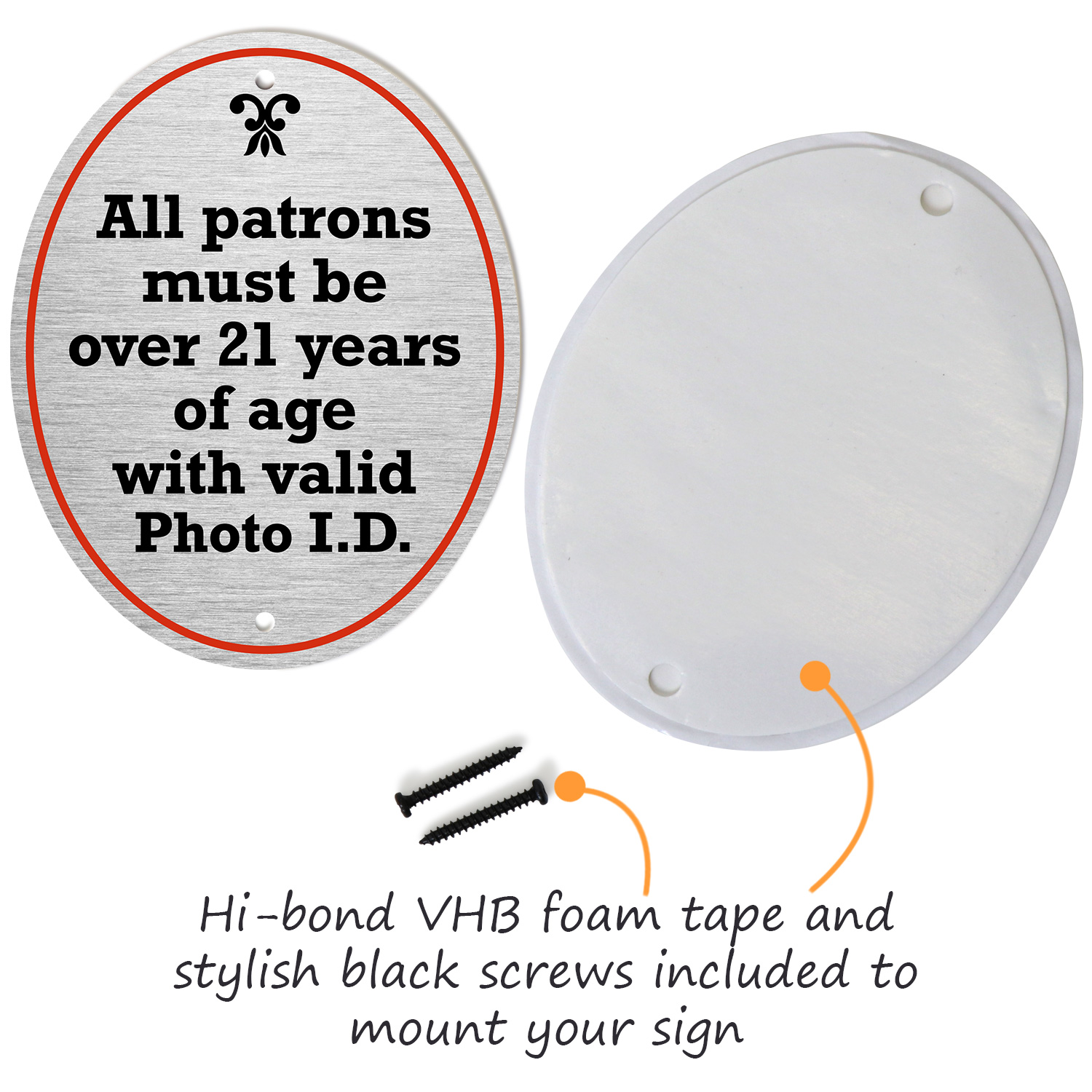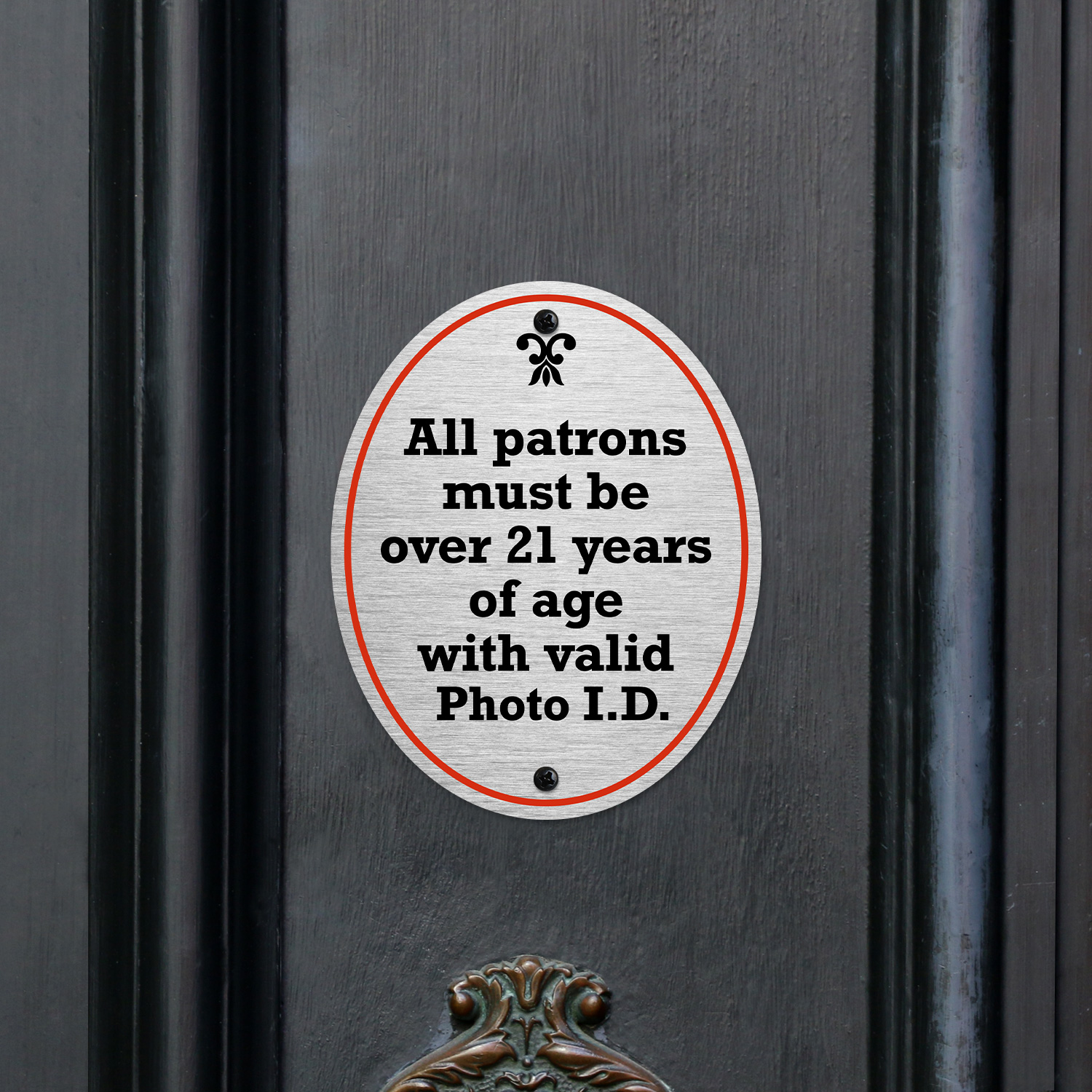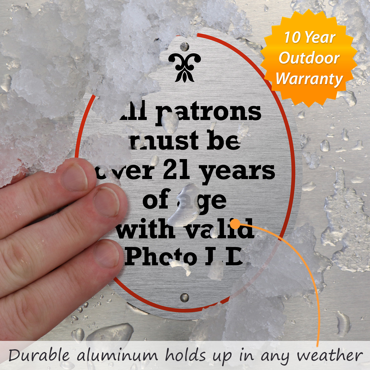 DiamondPlate™ Door Sign: All Patrons Must be Over 21 Years of Age with Valid Photo ID DP-0145