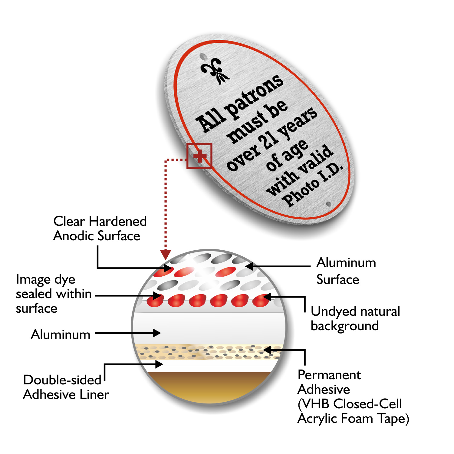 Anodized aluminum is our most durable door sign material. 32 mils thick.