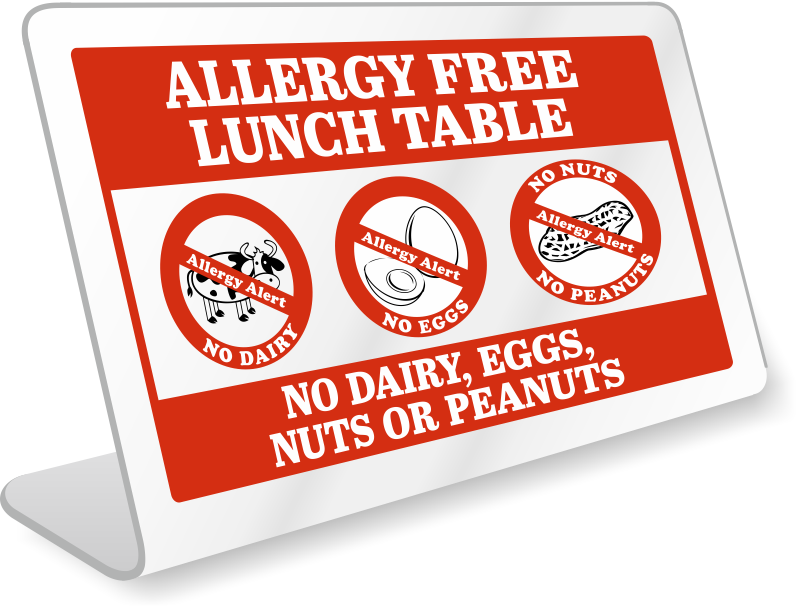 ShowCaseâ„¢ Desk Sign: Allergy Free Lunch Table - No Dairy, Eggs, Nuts Or Peanuts