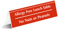 Engraved Table Top Tent Sign: Allergy Free Lunch Table - No Nuts Or Peanuts