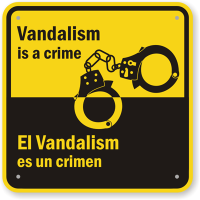 Bilingual No Vandalism Sign: Vandalism Is A Crime - El Vandalism Es Un Crimen (English/Spanish) K-7658