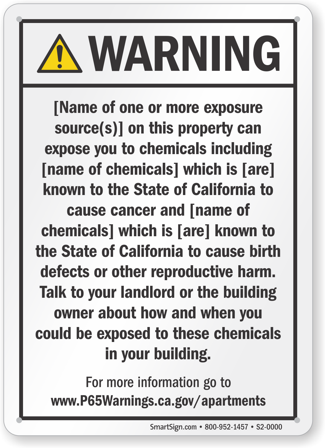 Our line of Proposition 65 products is compliant with California state law. Use our products to mark teratogenic and carcinogenic hazards.