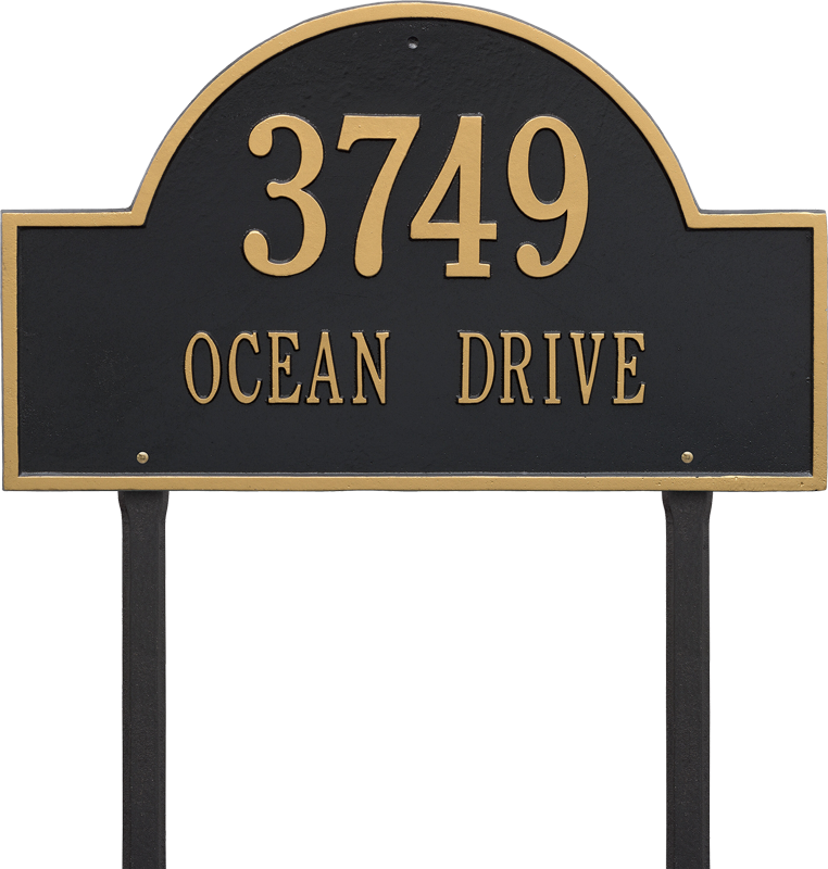 The Arch Marker Estate Lawn Two Lines Address Plaque will accentuate your home's exterior with elegance. The address plaque is made from rust-free cast aluminum providing excellent quality. The plaque has a stylish arch shape.