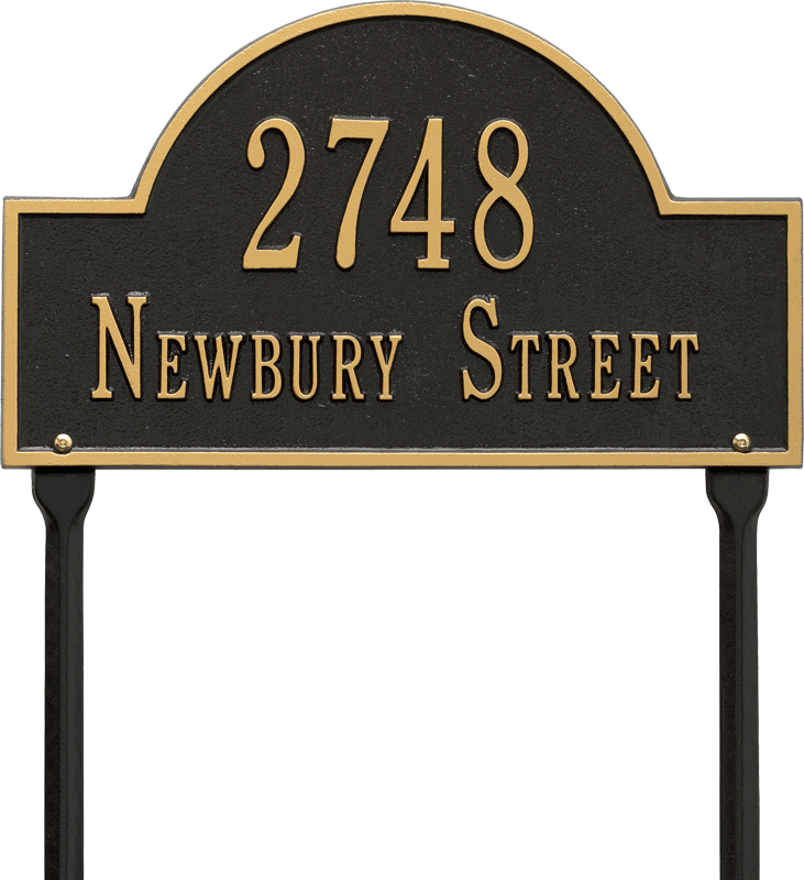 The Arch Marker Standard Lawn Two Lines Address Plaque will accentuate your home's exterior with elegance. The address plaque is made from rust-free cast aluminum providing excellent quality. The plaque has a stylish arch shape.