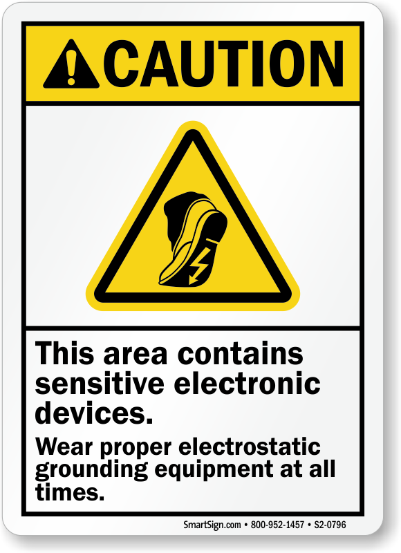 ANSI Caution Sign: This Area Contains Sensitive Electronic Devices, Wear Proper Electrostatic Grounding Equipment At All Times